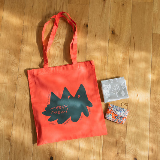 カラートートバッグ| コーラル(ネコかも?)/ コットン100%