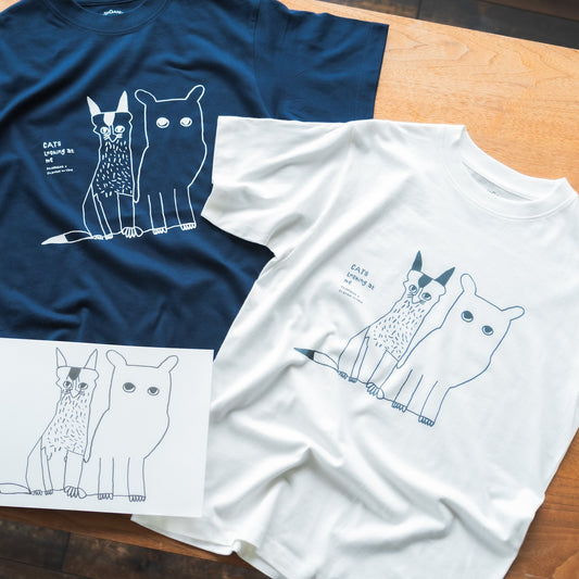 オーガニックコットンTシャツ( 見つめる猫)| 猫 / 動物