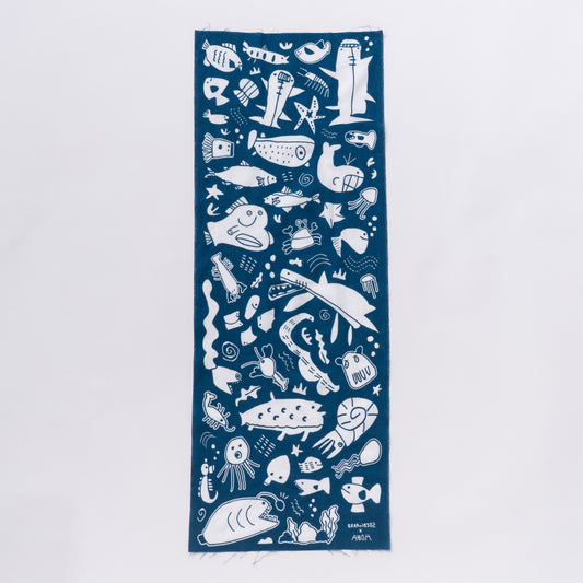手ぬぐい(海の生きものたち)|本染め / 海 / クジラ