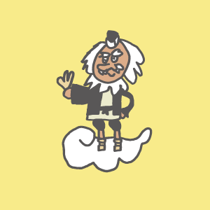 そうぞうがっこうの校長。高尾山のてっぺんから、みんなのもとに飛んでくる。雲には乗れるけれど電車には乗れない。
