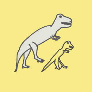 けんかするほど仲良しな恐竜の親子。大きな体と心で、はるか昔からみんなのことを見守っている。