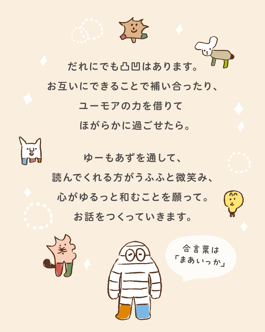 「協働福祉」をモットーに、肩の力がゆる〜くなるユーモアワールドをお届けします。