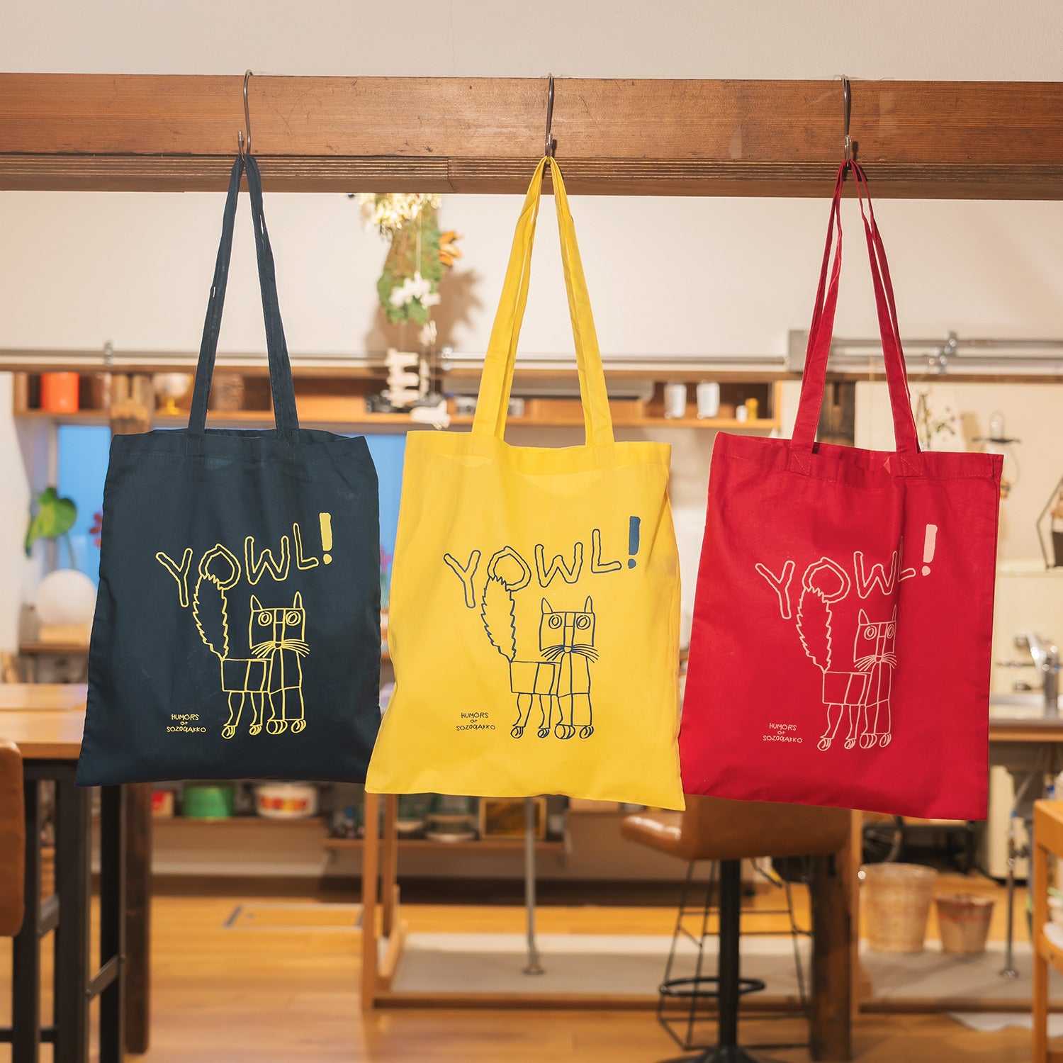 【新商品】カラートートバッグ| YOWL cat(ラズベリー/ネイビー/イエロー)