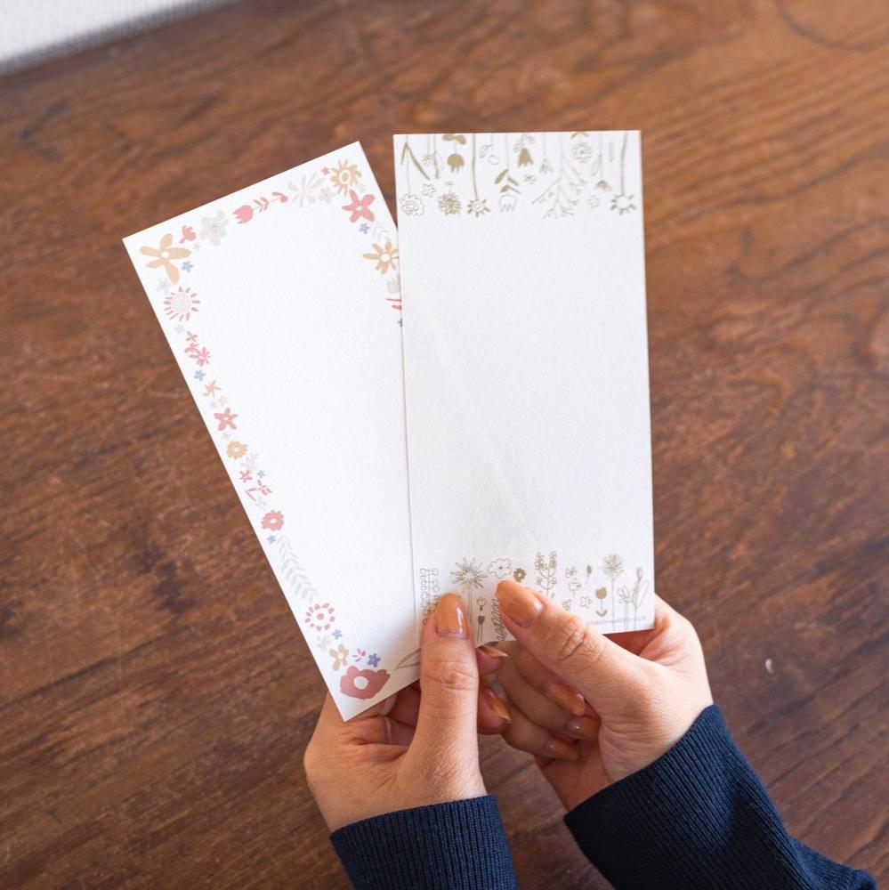 シックな色合いとあたたかみのある暖色系の2柄を楽しめる一筆箋です。