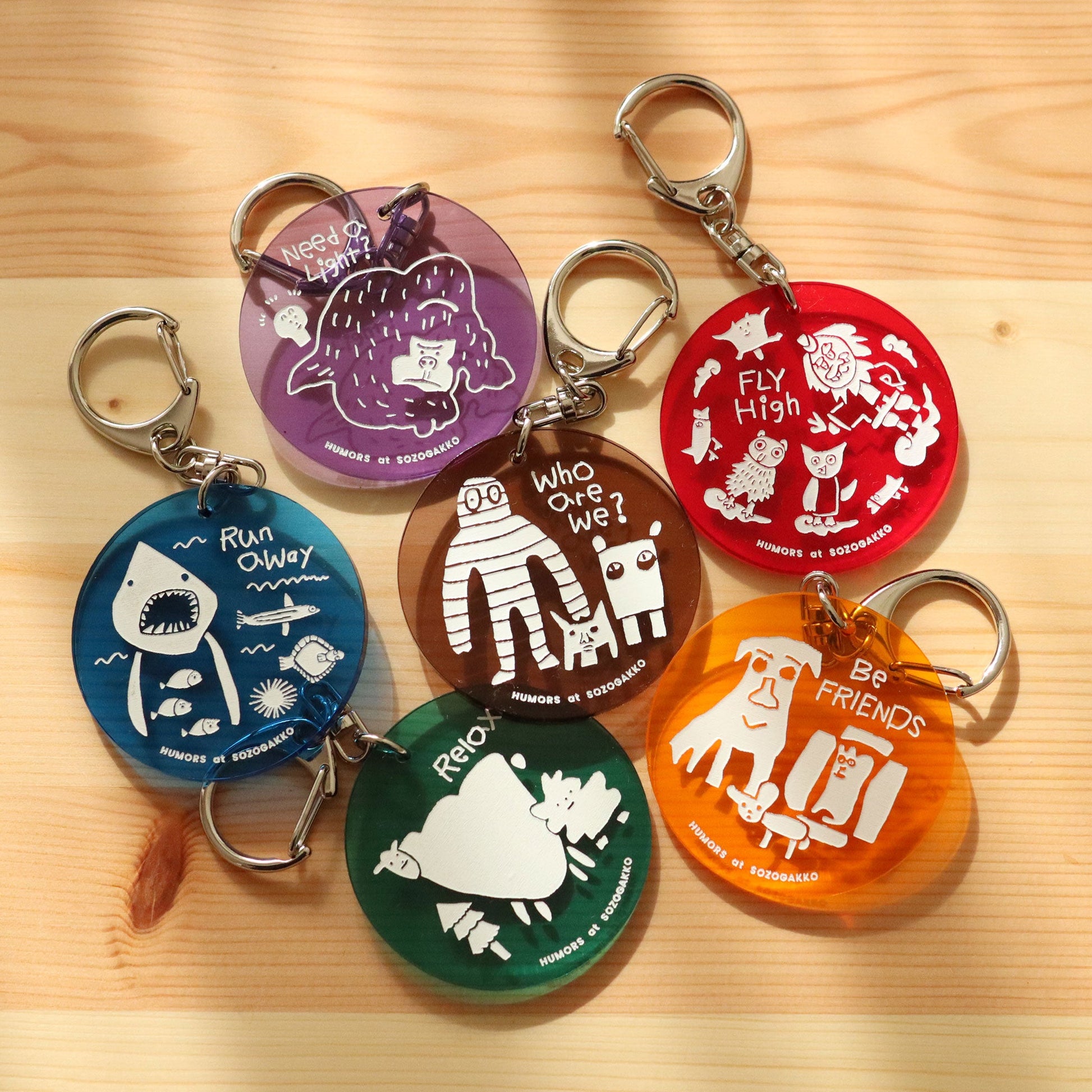 ゆーもあずのキャラクターたちが、持ち運べるアクリルキーホルダーに変身!