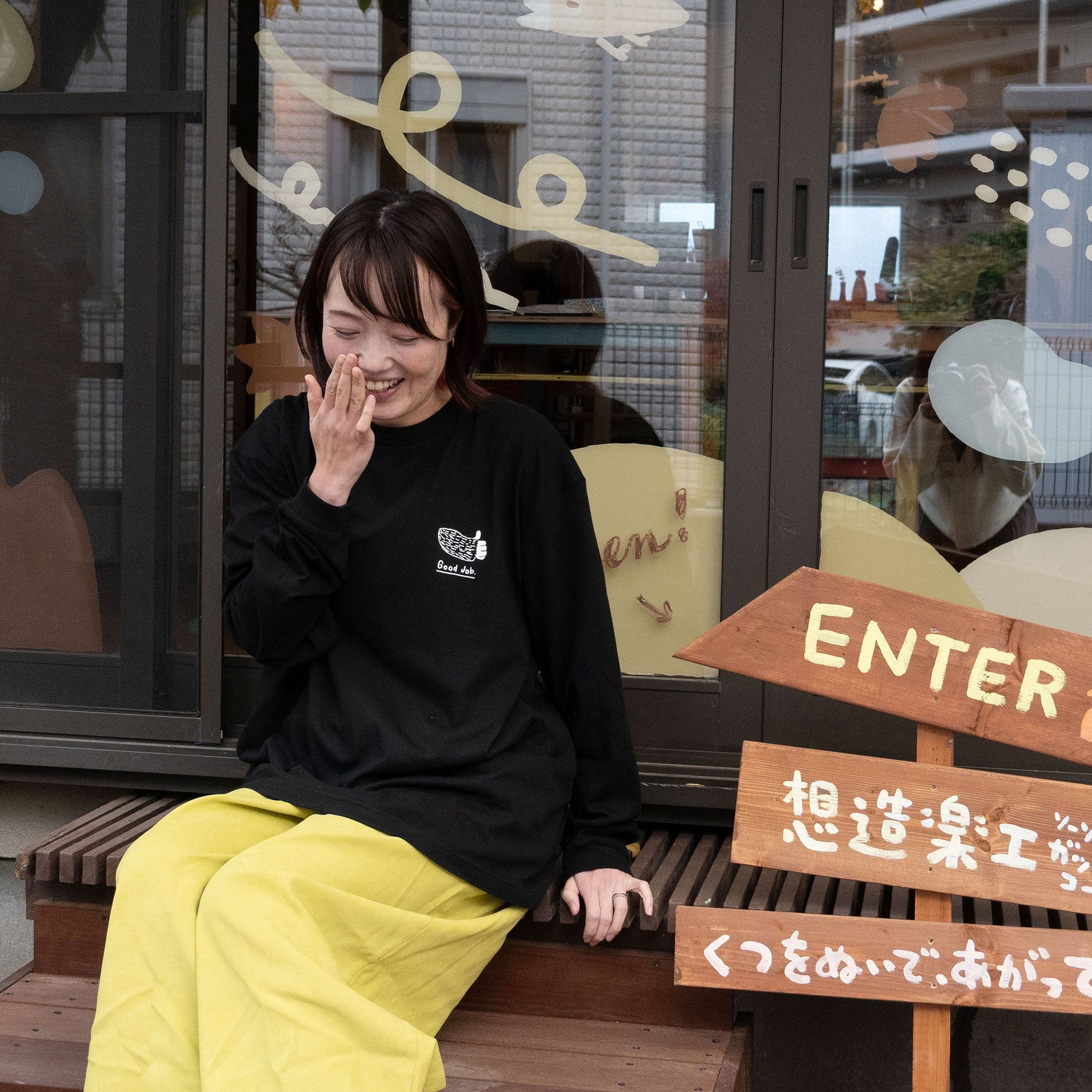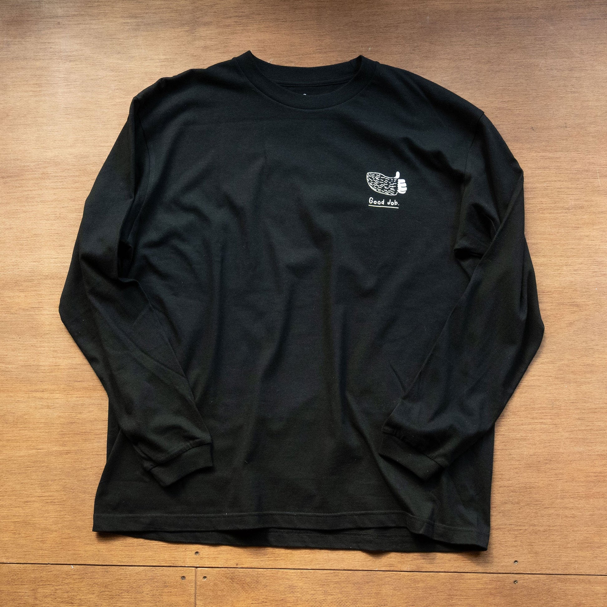 表面の左胸部分にサムズアップと『Good job』というあたたかいメッセージがプリントされているのもポイントです。