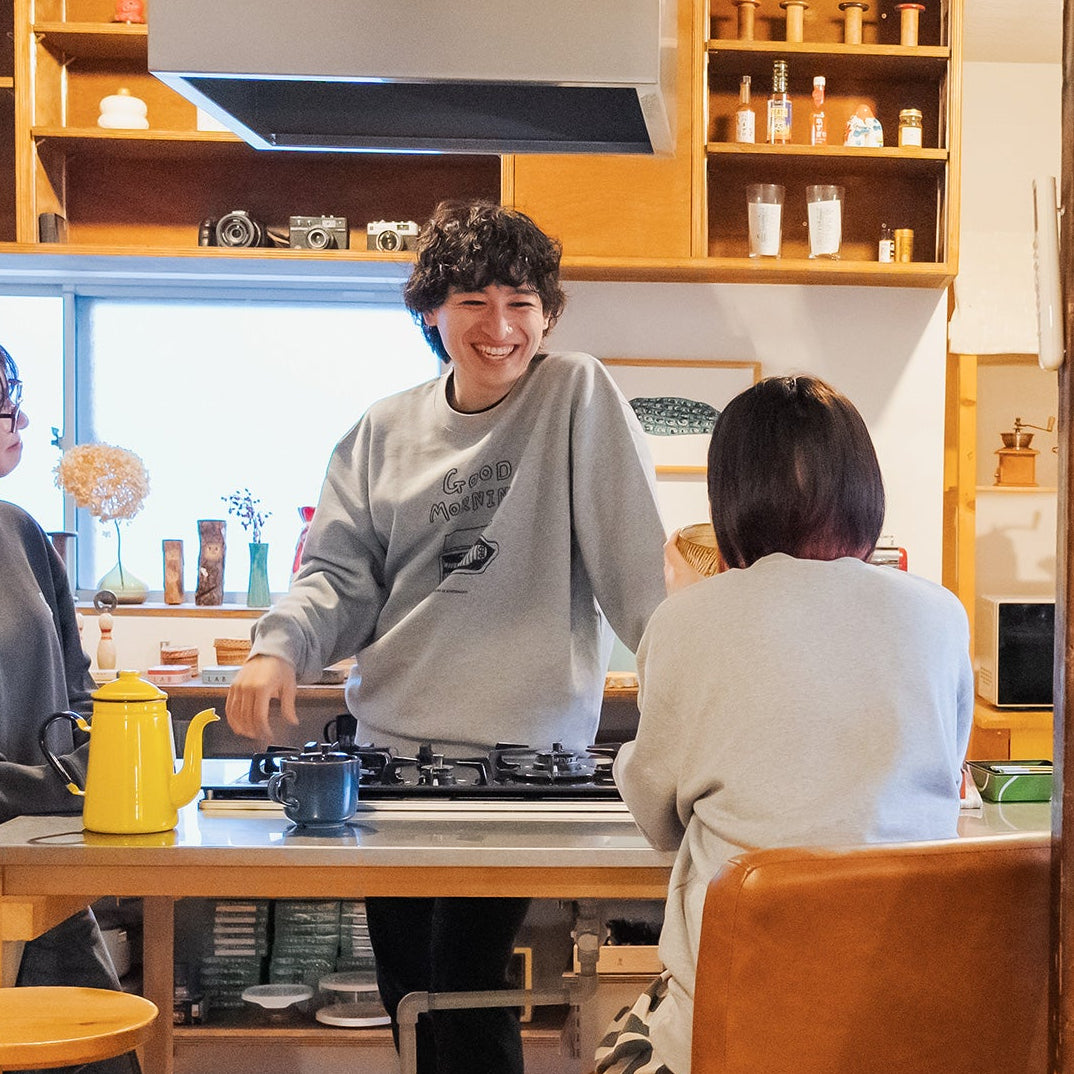 スウェットの定番、裏パイル地のクルーネックボディを採用しました。